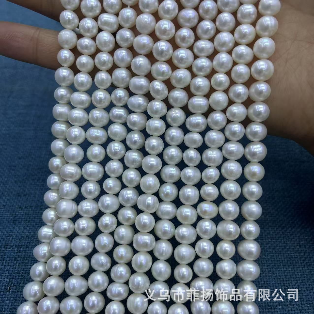 強光好品質淡水真珠7-8mm近円パンチ真珠DIY服飾ネックレスブレスレット部品卸売り
