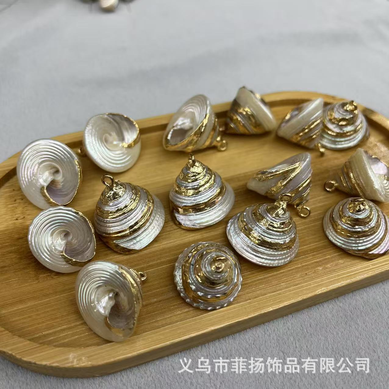 サザエ貝殻約18-25mm電気めっき縁塔状サザエDIY服飾ネックレスブレスレット部品卸売り