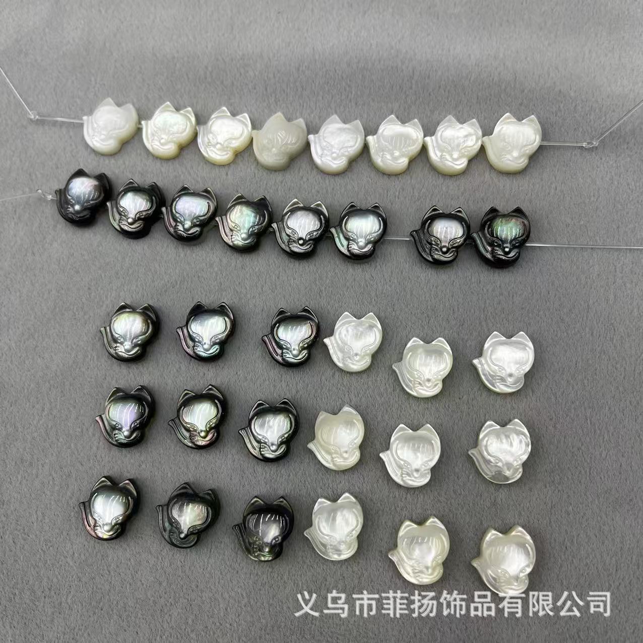 黒蝶貝白蝶貝11x13mmキツネの形彫刻貝殻DIY服飾ネックレスブレスレット部品卸売り