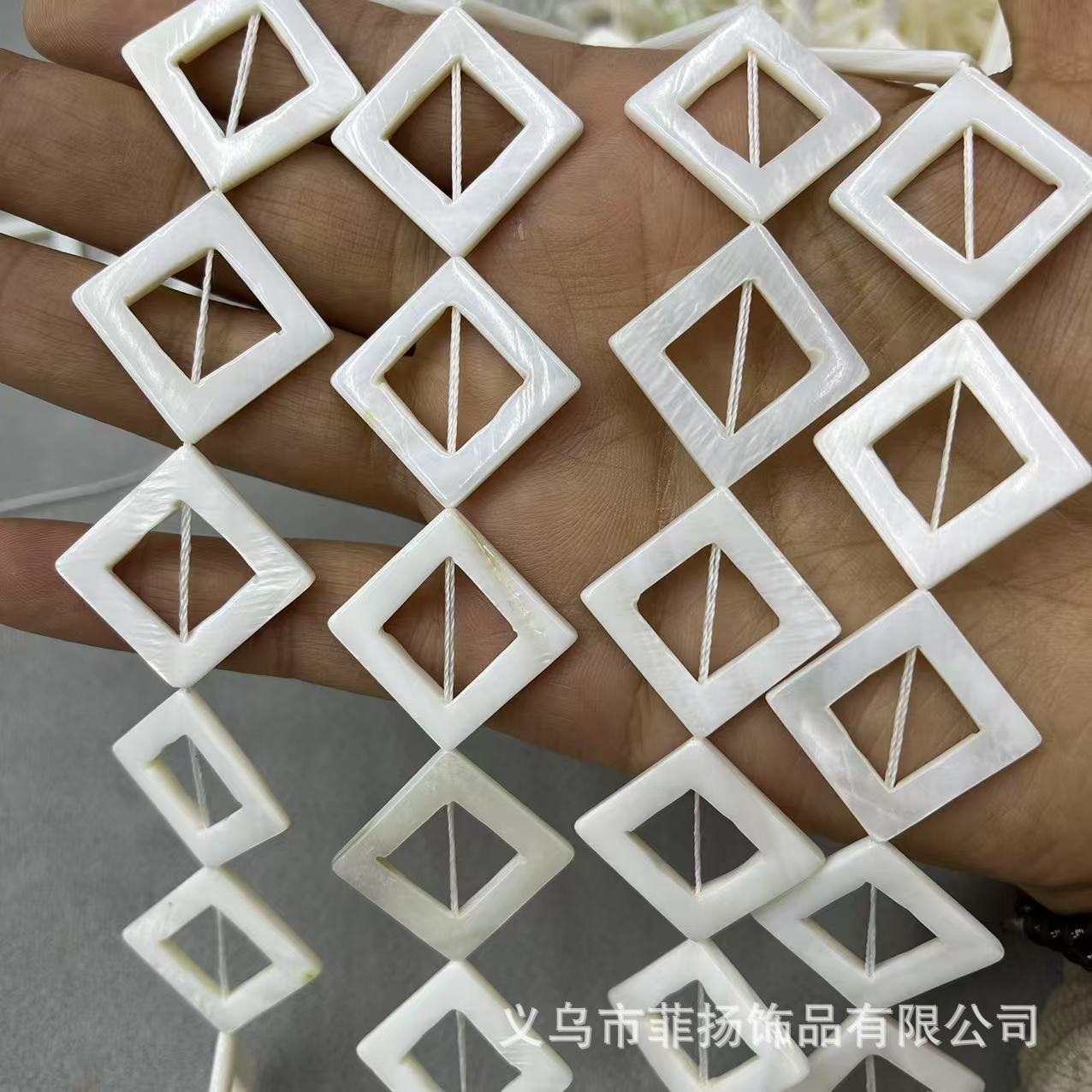 淡水貝貝殻28x28mm透かし彫り正方形面取り貝殻DIY服飾ネックレスブレスレット部品卸売り