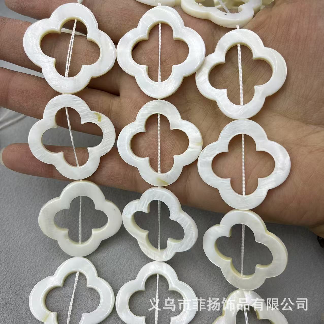淡水貝貝殻35x35mm透かし彫り四葉花幾何学模様DIY服飾ネックレスブレスレット部品卸売り