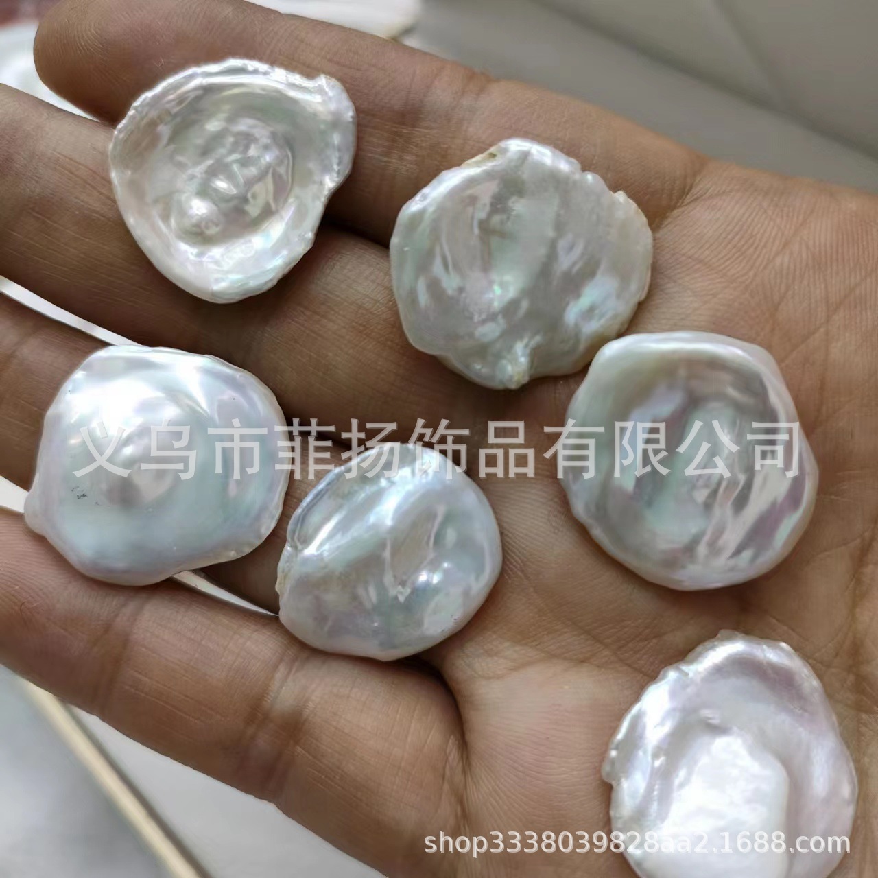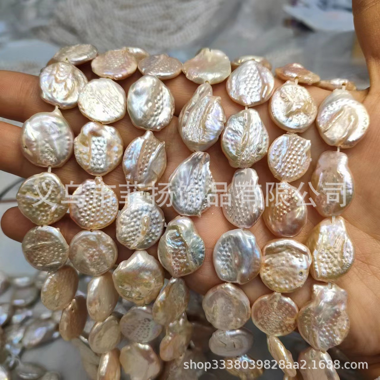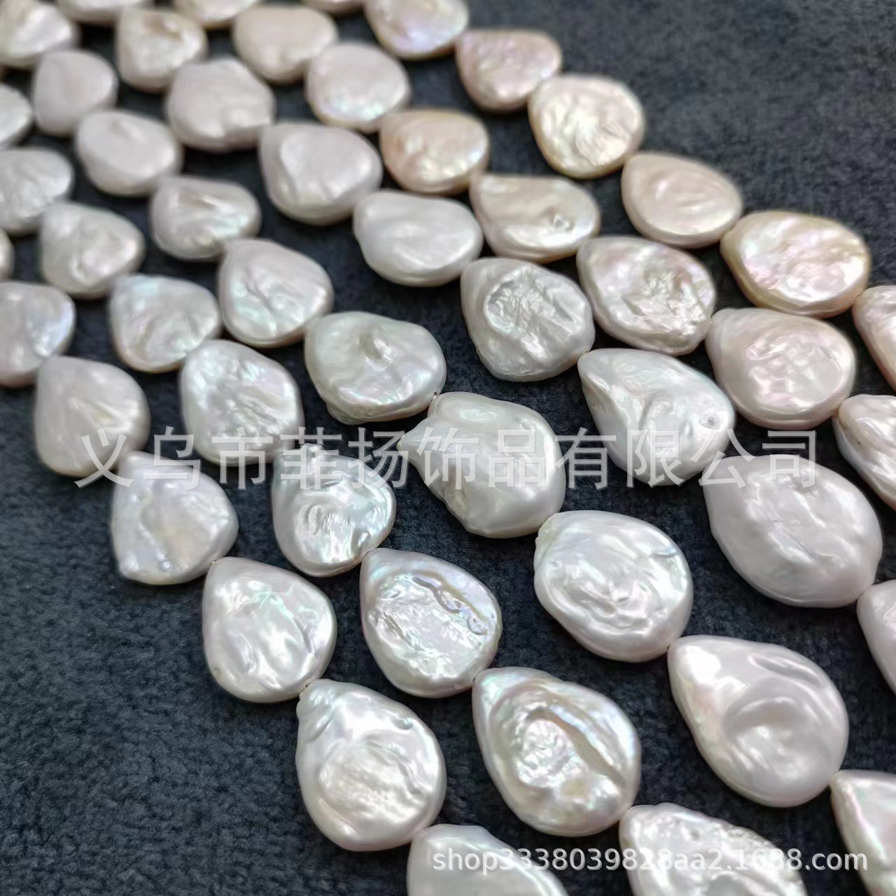 バロック異形蛇皮ボタン珠17-18mm直孔白透粉ウエハビーズ半製品淡水真珠