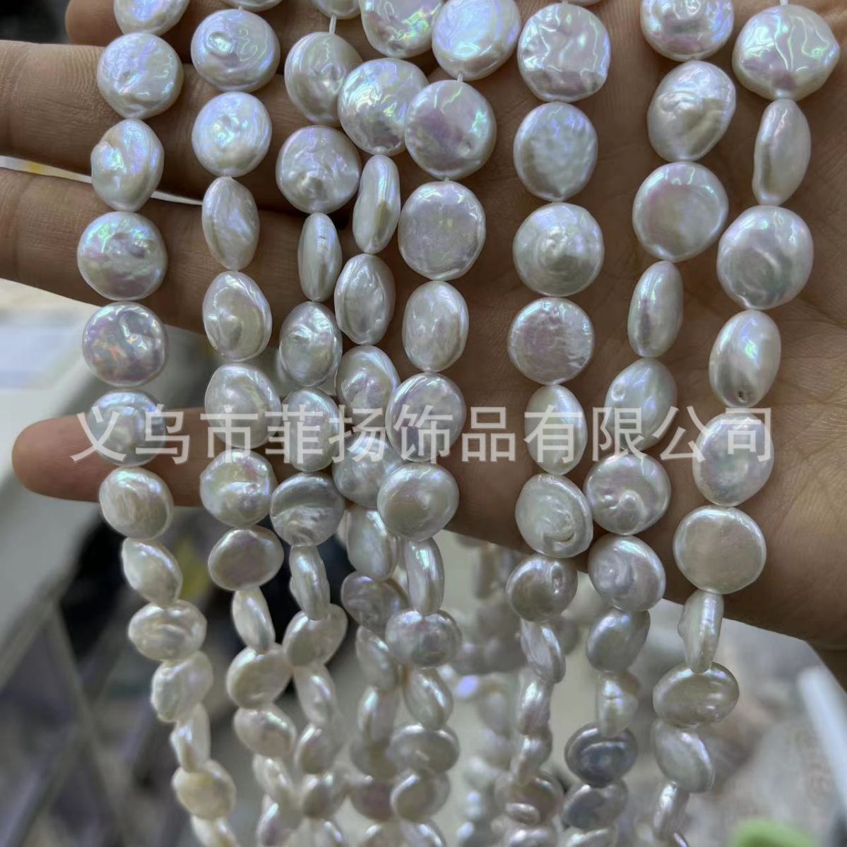バロック異形ボタンビーズ12mmストレートホール円形コイン型パールビーズ半製品淡水パール卸売
