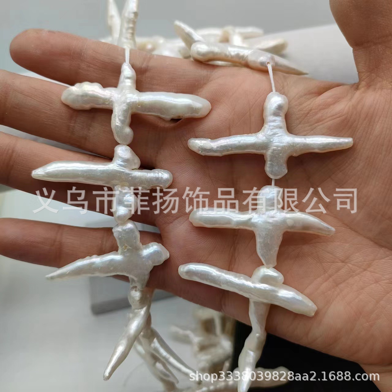異形十字真珠バロックビーズ淡水白色真珠散珠ビーズdiy半製品部品卸売り