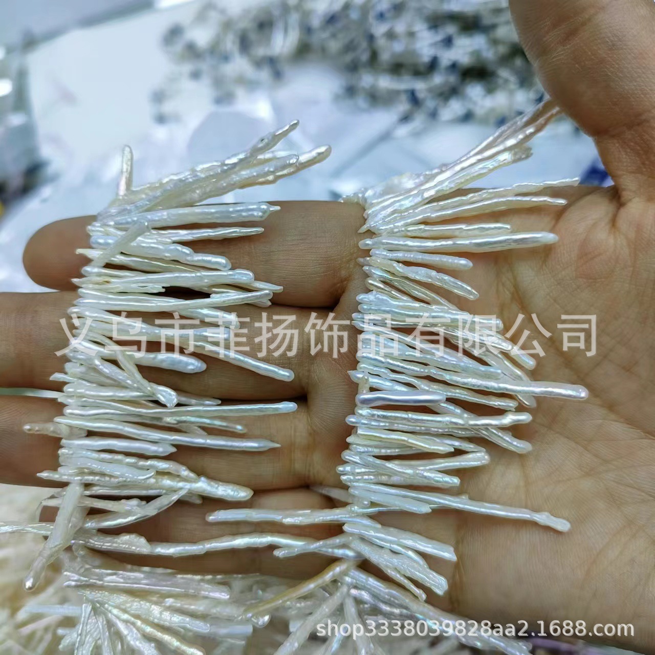 強い光のバロックの異形のつまようじの真珠の三七穴の数珠の淡水の真珠の細い長い条の形は不規則です。