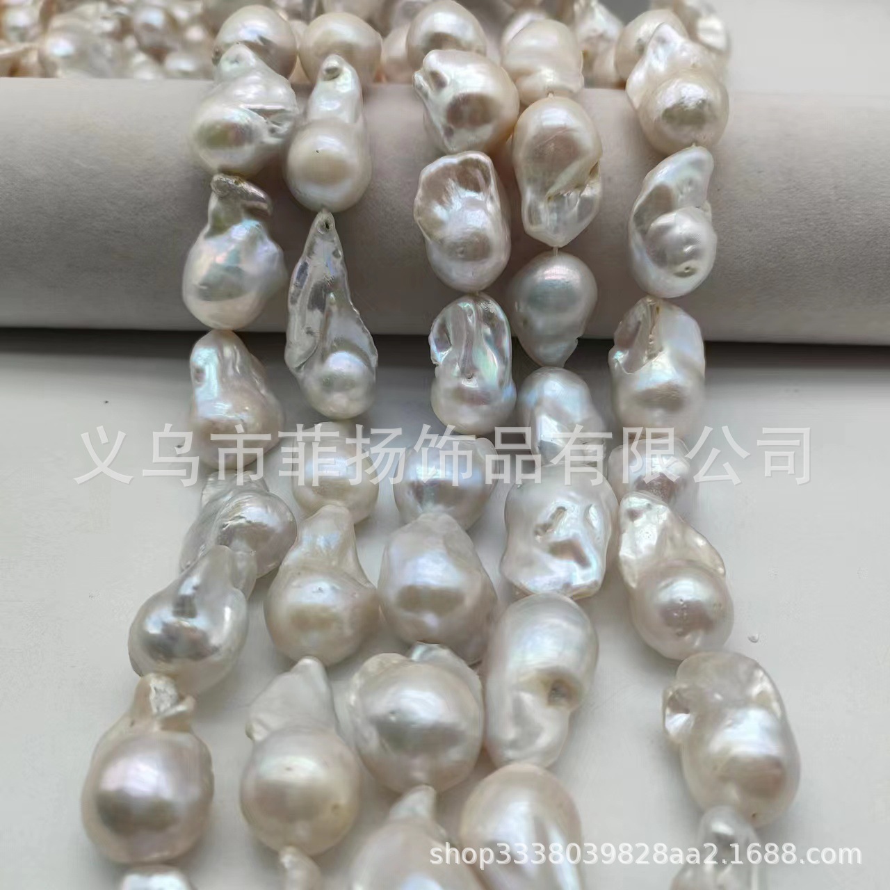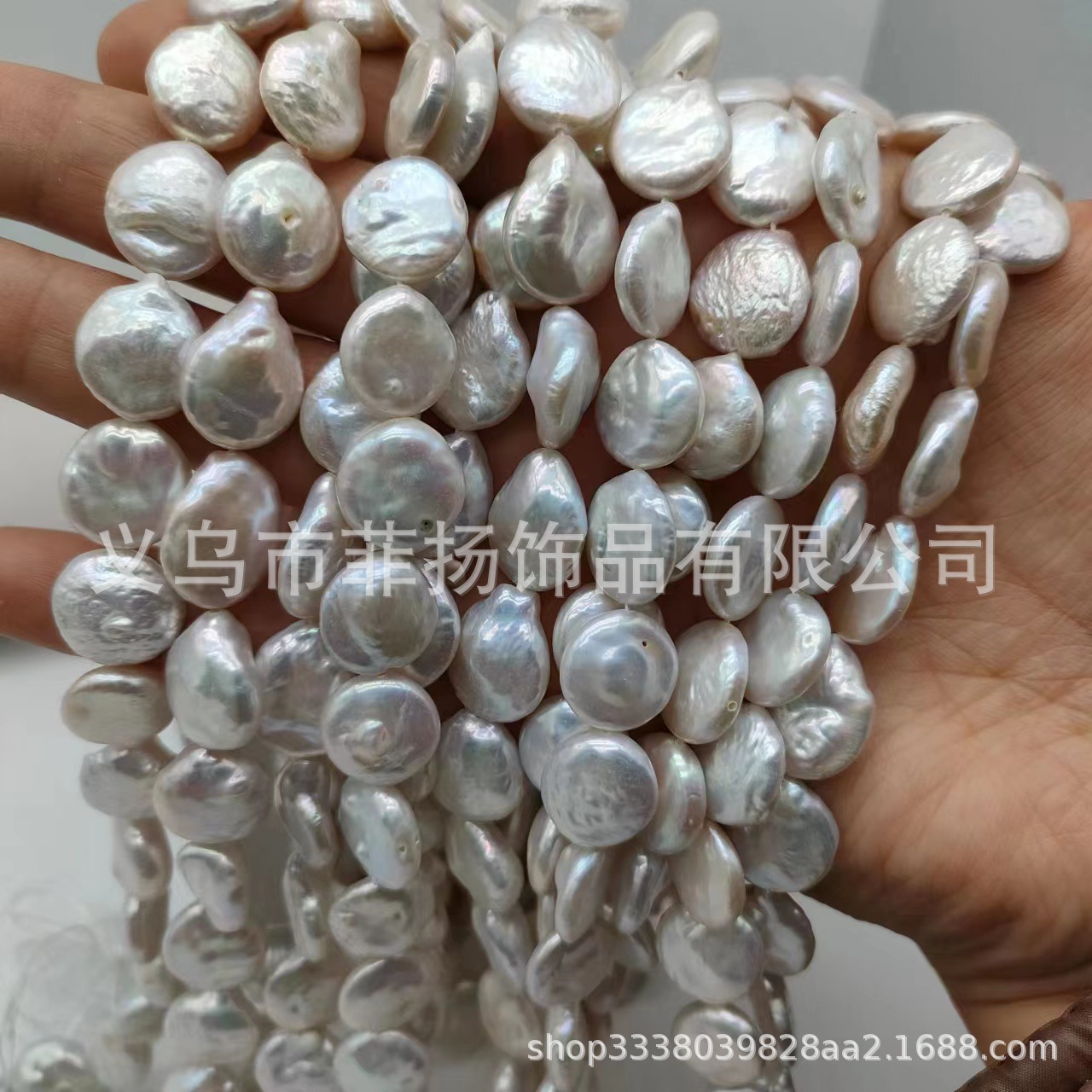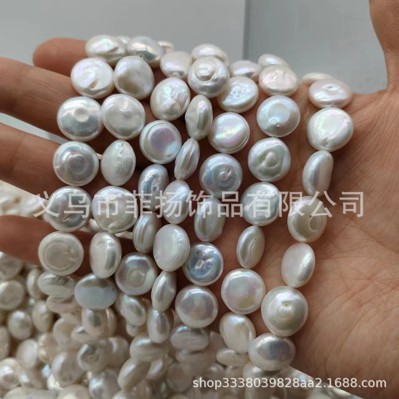 メーカー直販天然淡水真珠13-14mm強光バロックねじ不規則ボタン直孔ビーズ