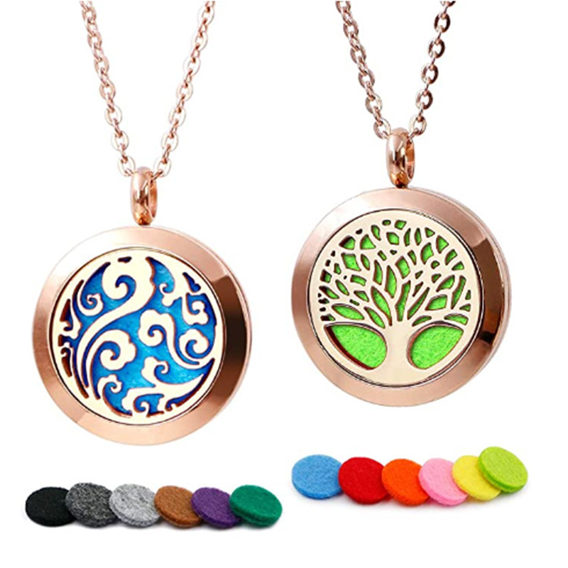 ストレート空メッキ金色バラ金黒色円形香薫ペンダント円形ステンレスバラ金香水ネックレス