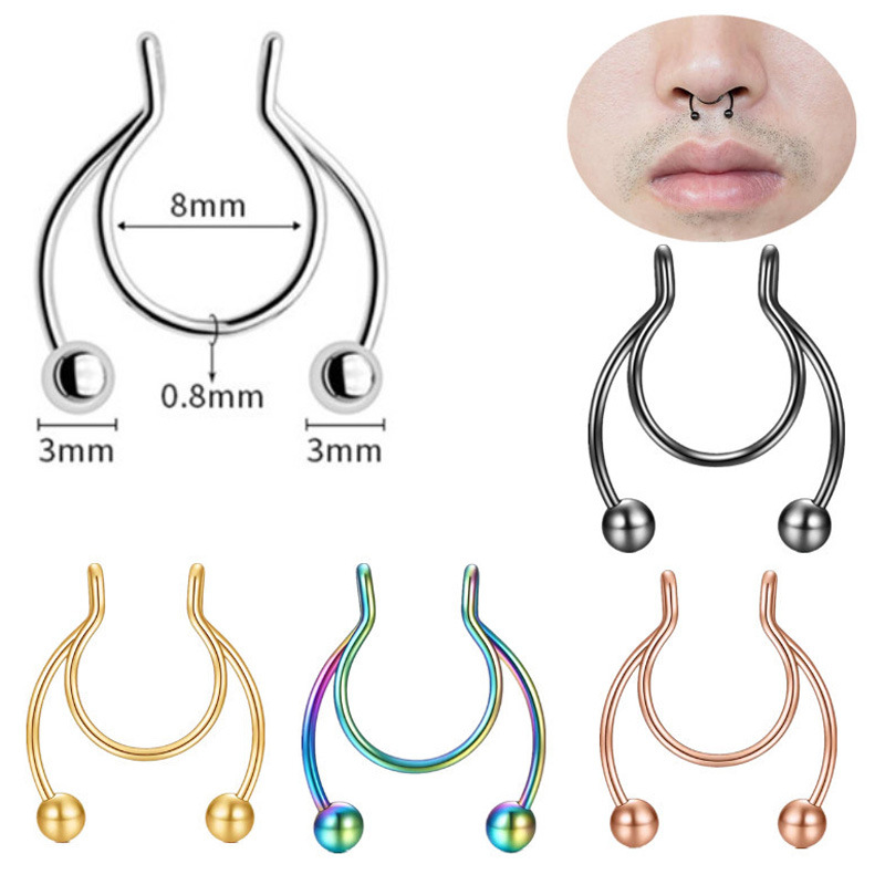 欧米の新型ステンレスu形鼻飾りチタン鋼鼻環鼻釘セット人体穿刺アクセサリー対外貿易卸売り