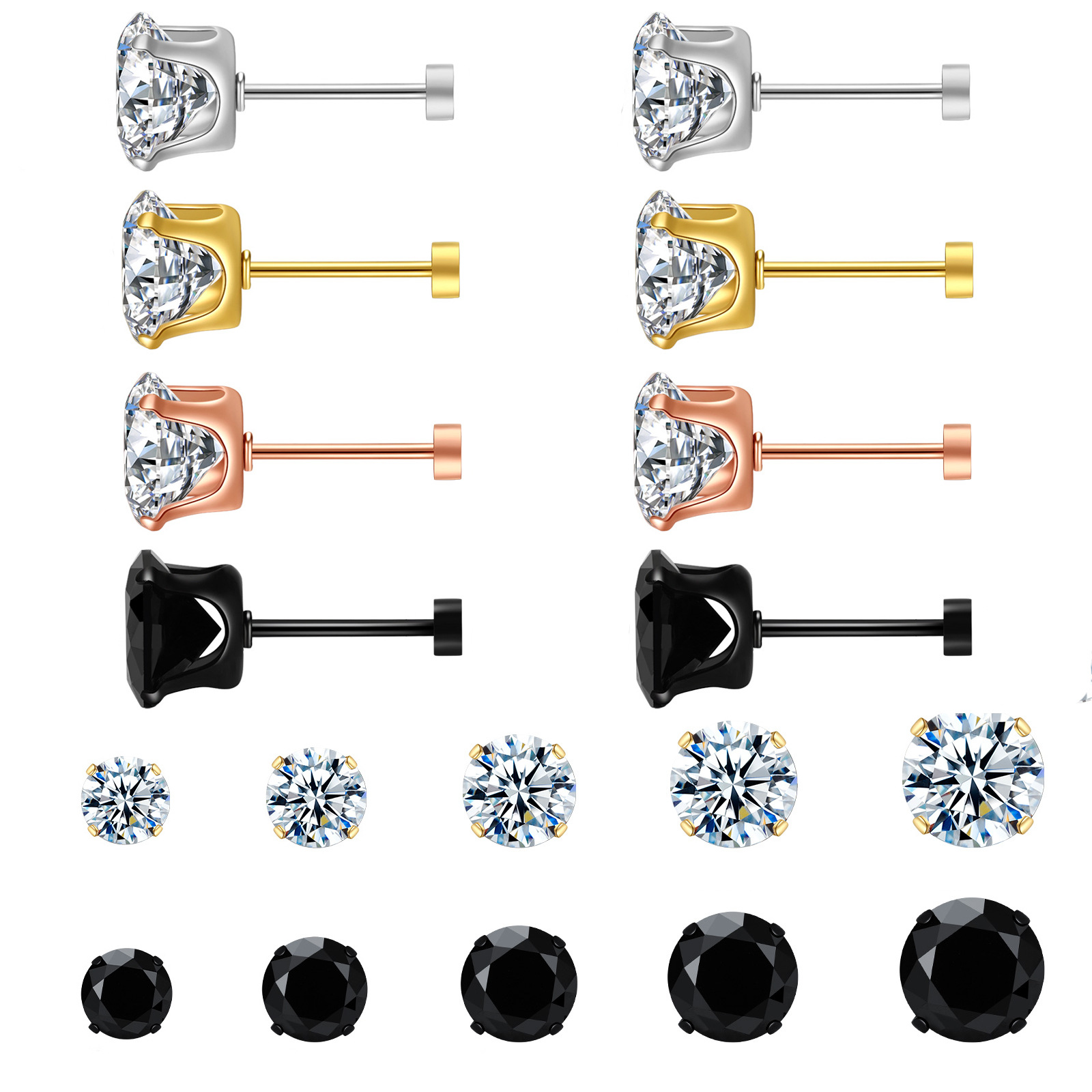 四爪ジルコンチタン鋼ピアス3-8mm真金メッキ金色バラ金黒色球ピアス卸売り