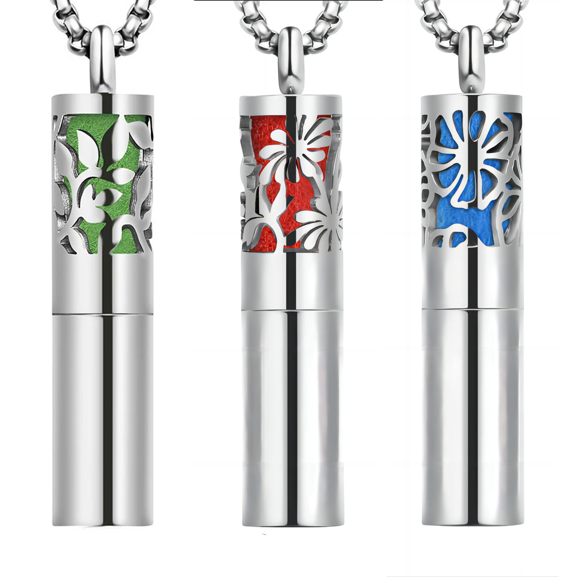 57-109香水瓶ネックレスチタン鋼透かし彫りは円柱体香薫ペンダントネックレス対外貿易ネックレスアクセサリーを開くことができる