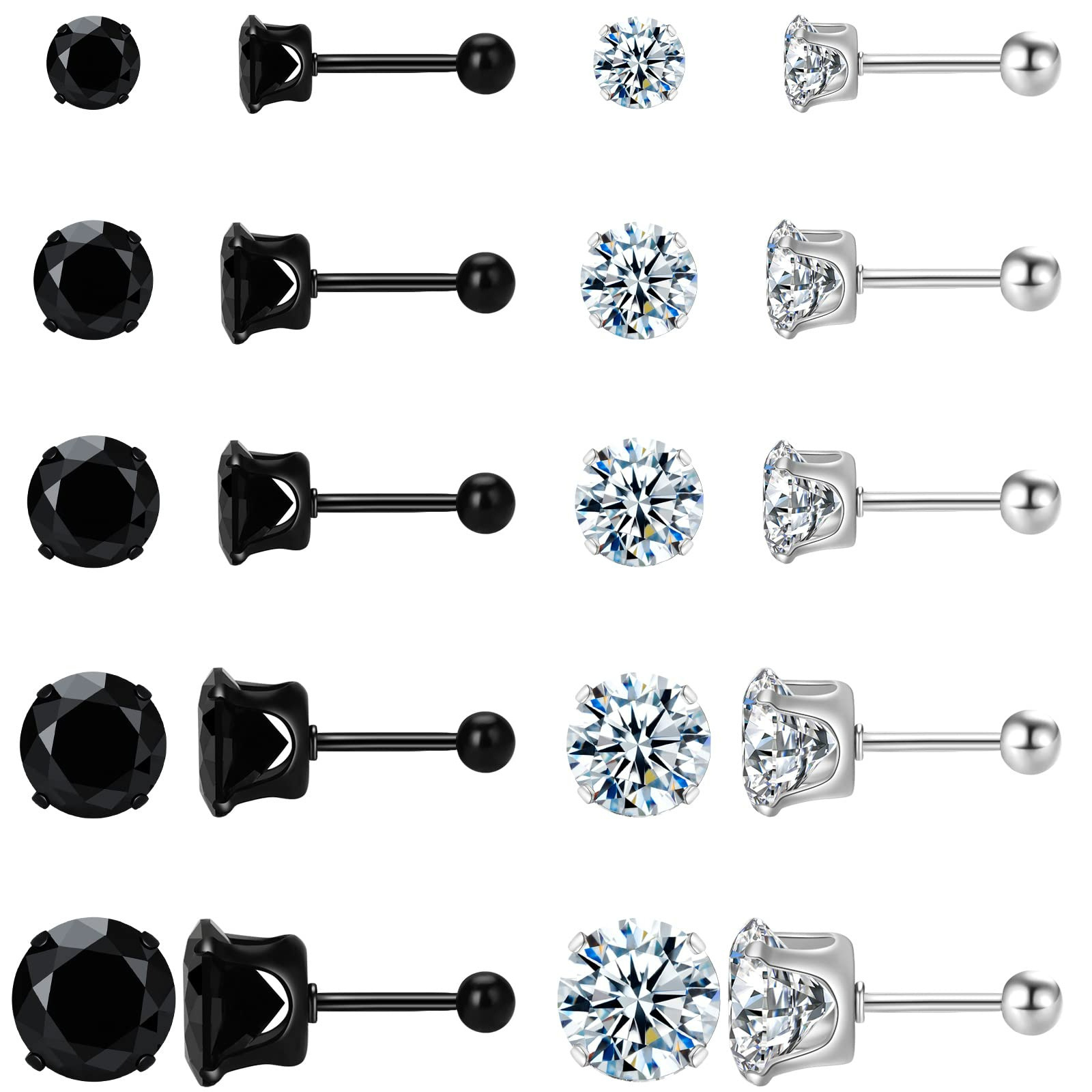 平底耳栓四爪ジルコンピアス3-8mmAAA級ジルコン耳骨釘平底丸餅耳栓耳栓チタン鋼
