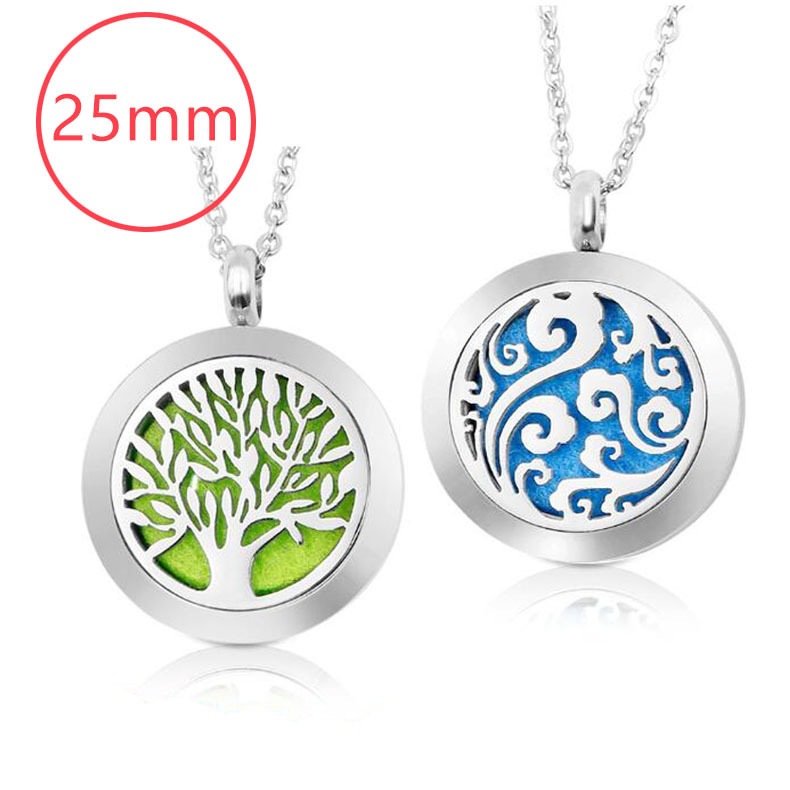 【25mmステンレス香薫ペンダント】ステンレス透かし彫り精油ネックレスチタン鋼磁石香水拡散箱
