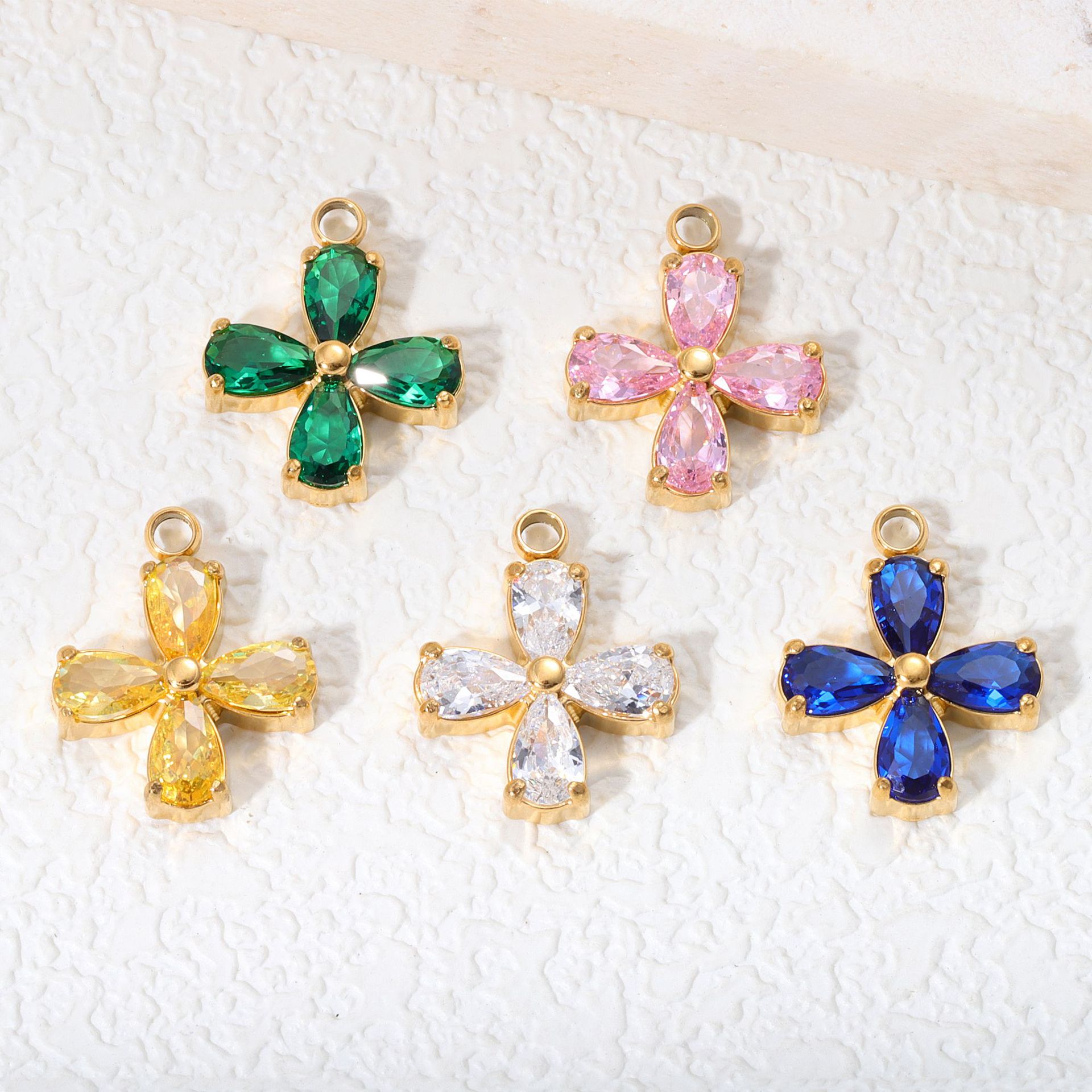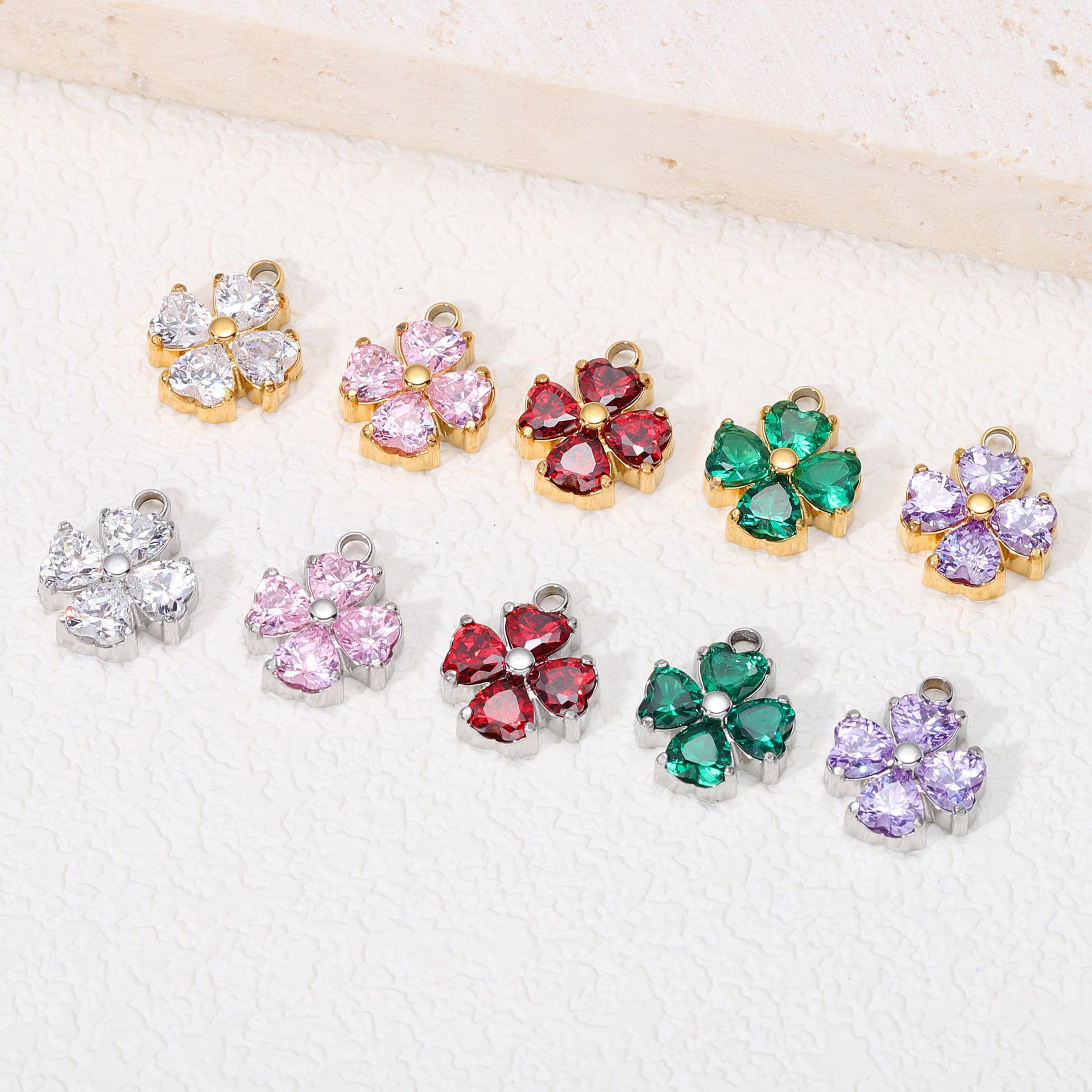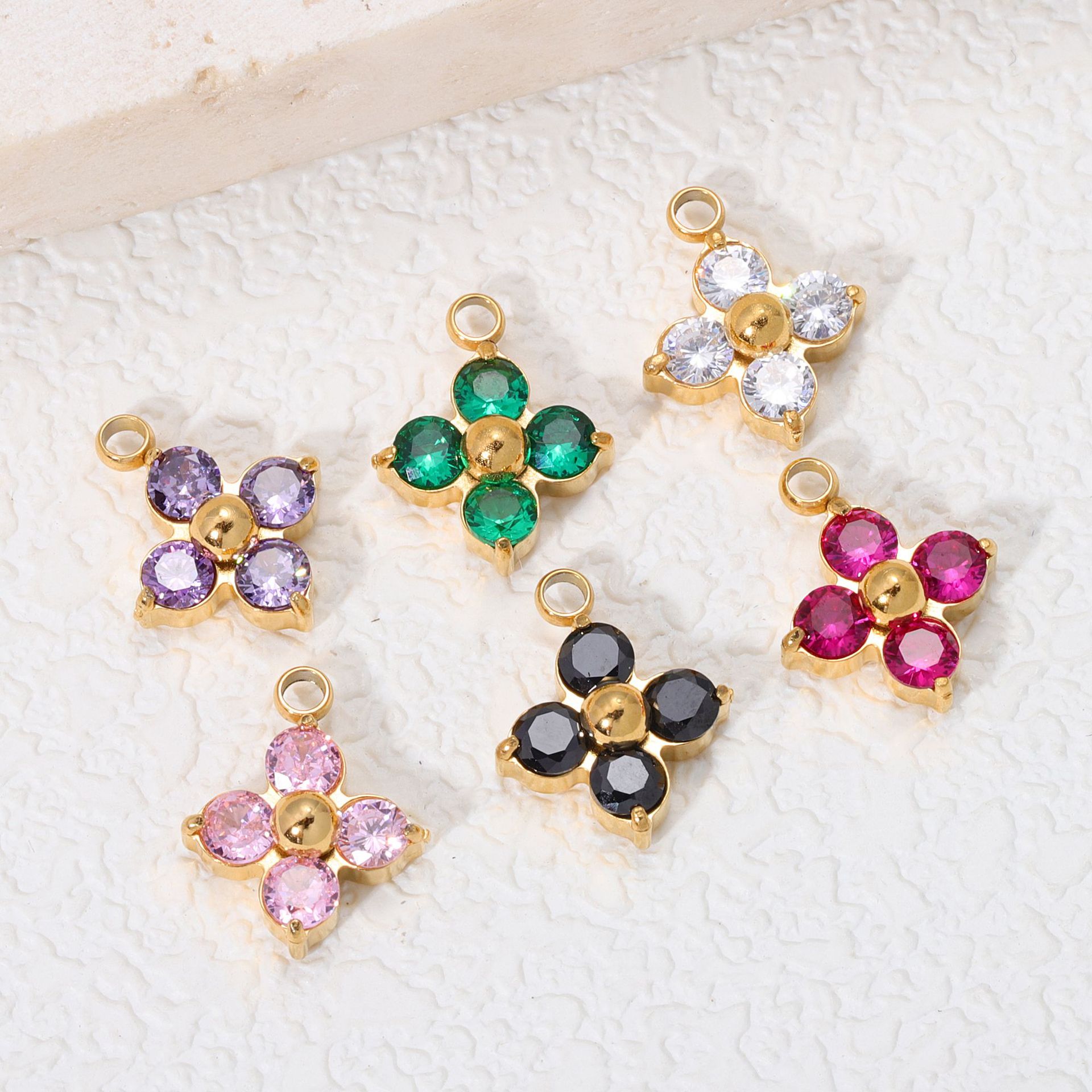四つ葉のクローバー ジルコン スモール ペンダント ステンレス鋼 ストーン ホルダー 8K ゴールド ハンドメイド DIY ネックレス ブレスレット ペンダント アクセサリー アクセサリー