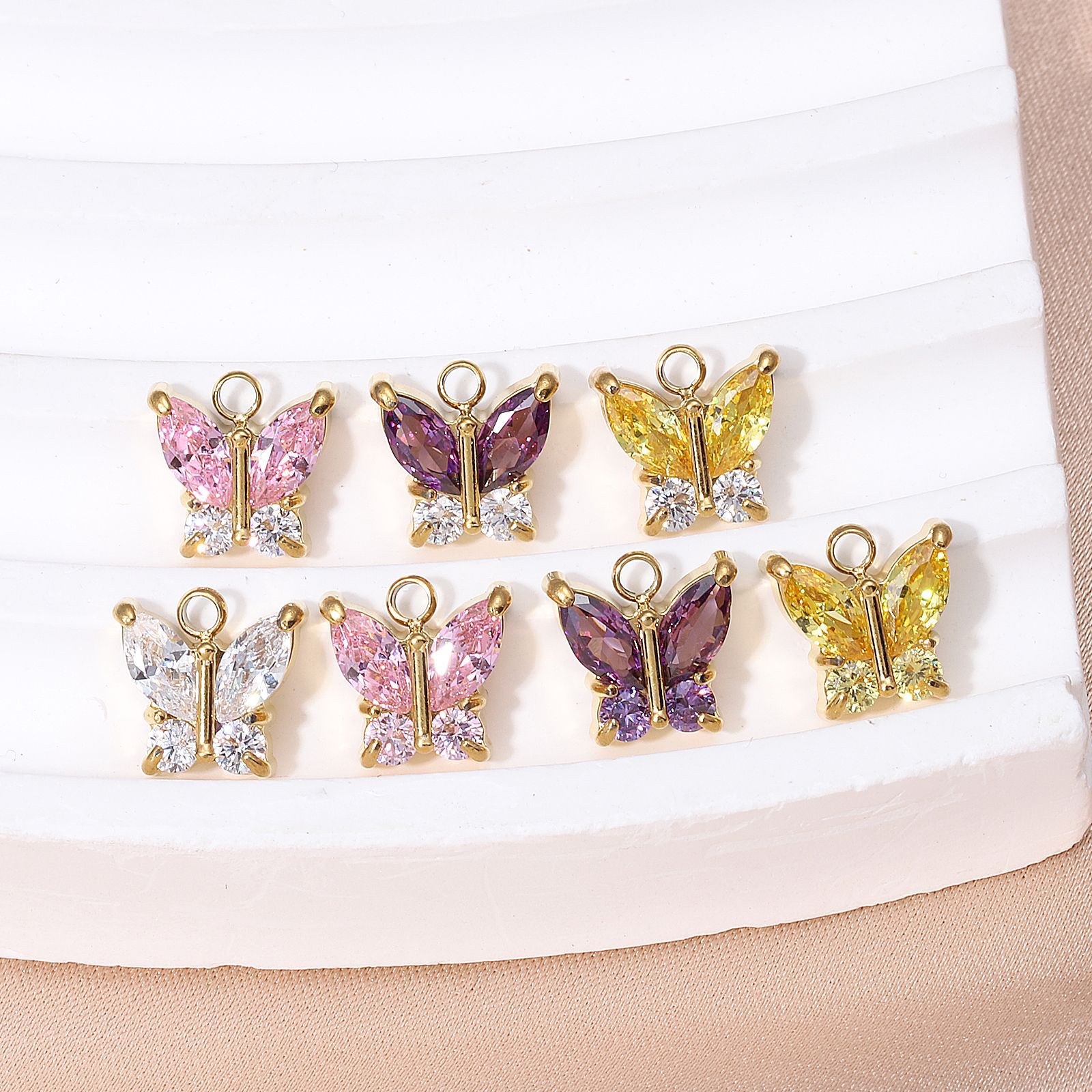 ステンレスジルコン蝶小ペンダント18k金メッキネックレスブレスレット多彩蝶DIYアクセサリーペンダントアクセサリー