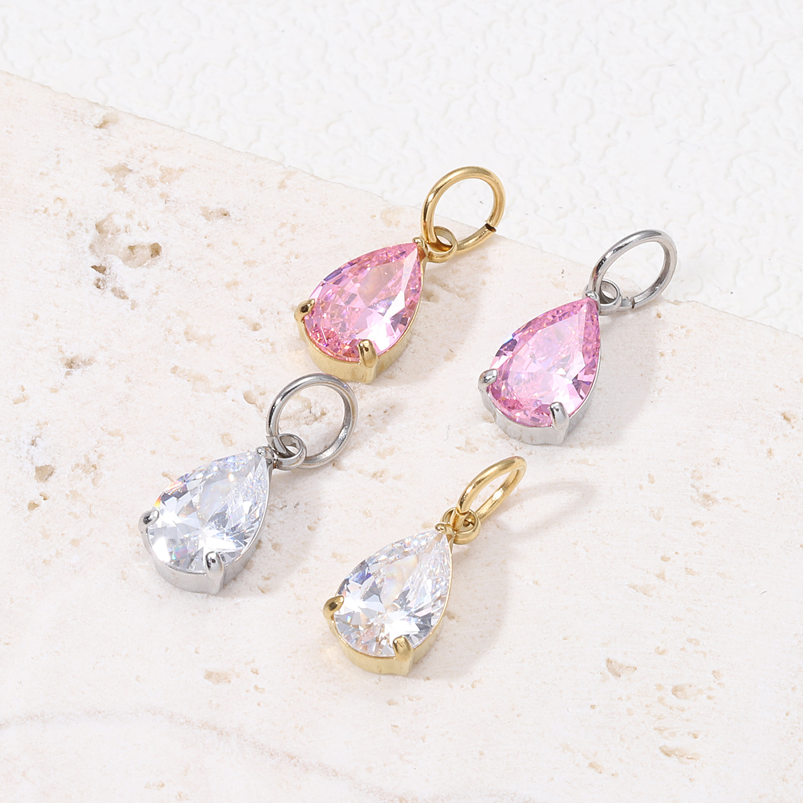 DIY梨の形のジルコンのペンダントの部品のステンレスのドリルの爪は水滴のネックレスのペンダントのイヤリングのアクセサリーの部品を挿し込みます。