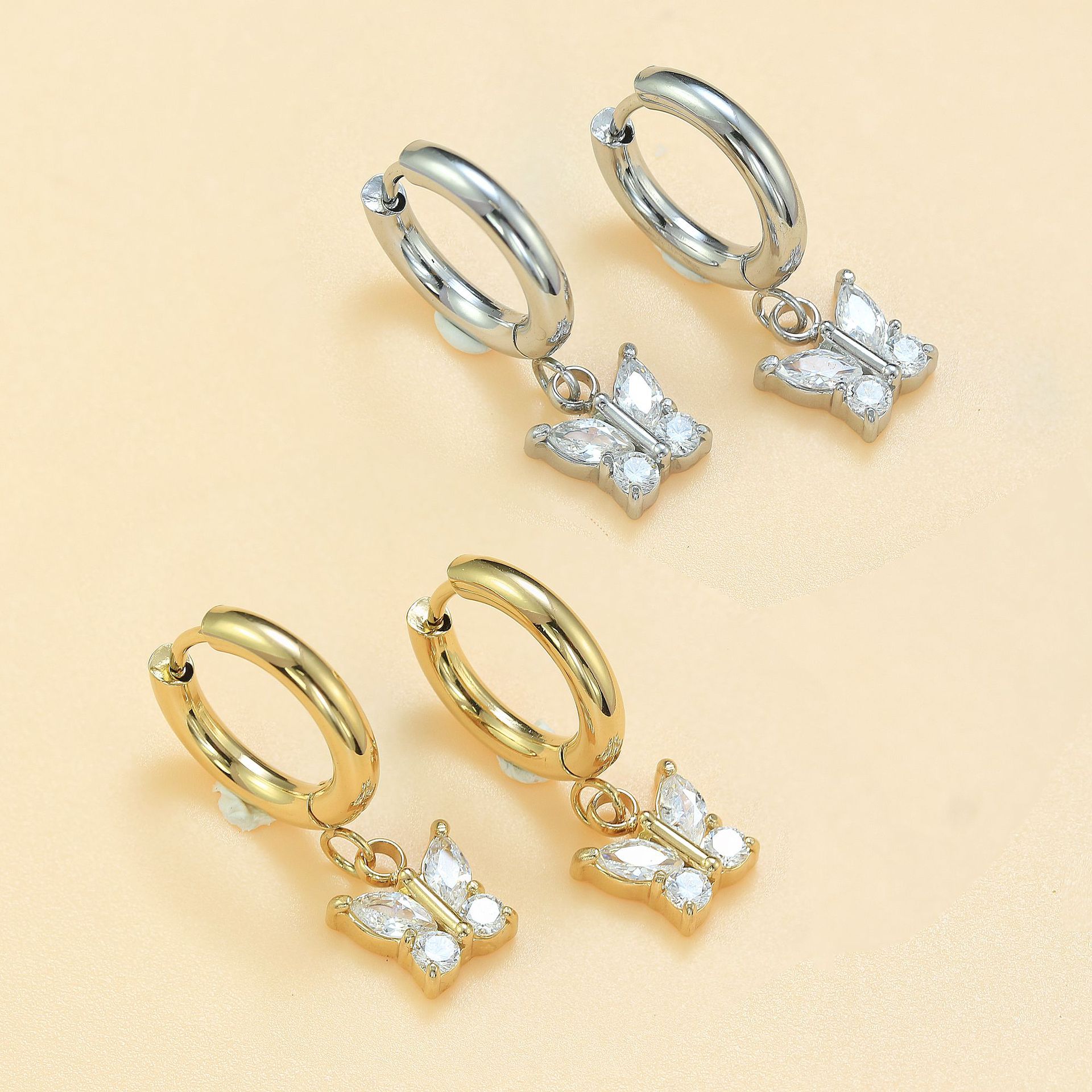 チタン鋼蝶ジルコンイヤリングステンレス石托18k金丸耳環ファッション女性イヤリング