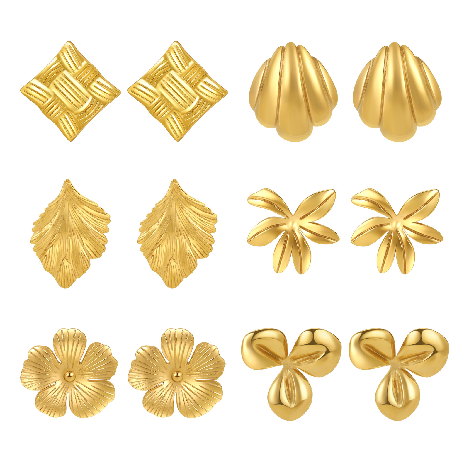 国境を越えて人気のある女性の金色大気ファッション復古イヤリングステンレス18k金立体花葉ピアス