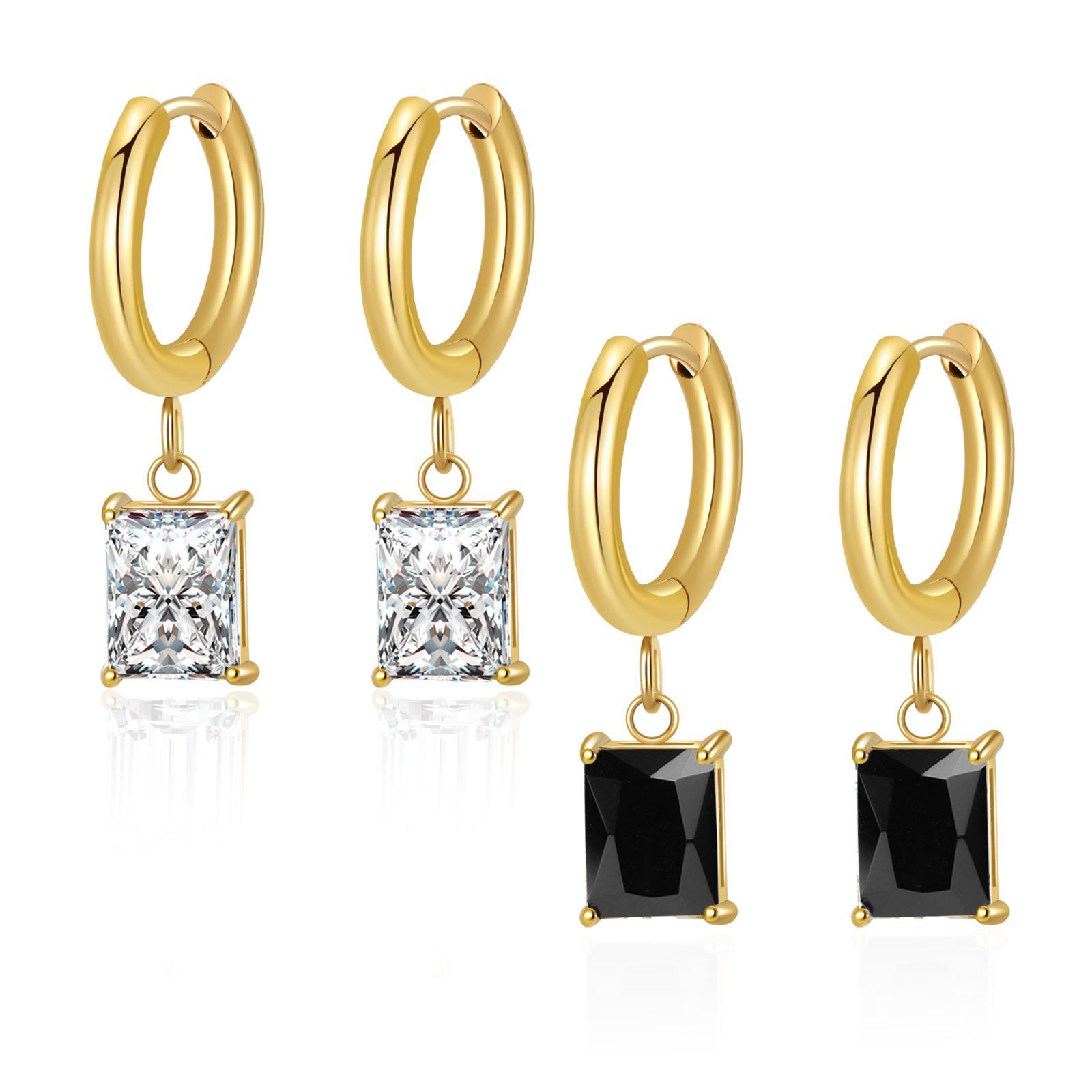 幾何学的な長方形のジルコンのイヤリングのイヤリングのステンレス18kの真空のめっきの円の耳のクリップの越境のイヤリングの卸売り