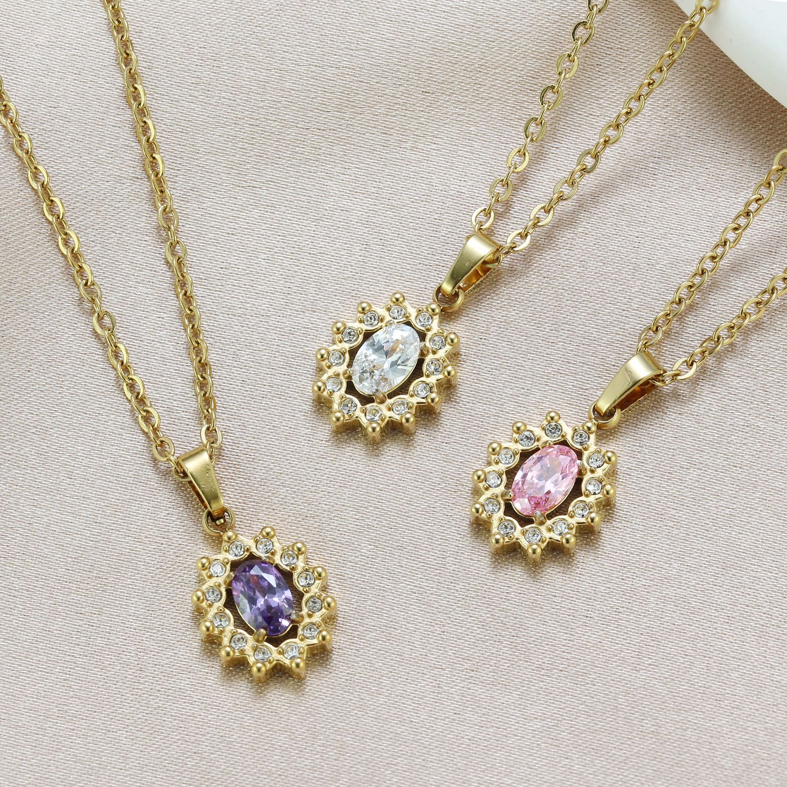 新型チタン鋼のネックレスの瓜子は楕円のジルコンのペンダントのカラーのペンダントのネックレスを掛けます。
