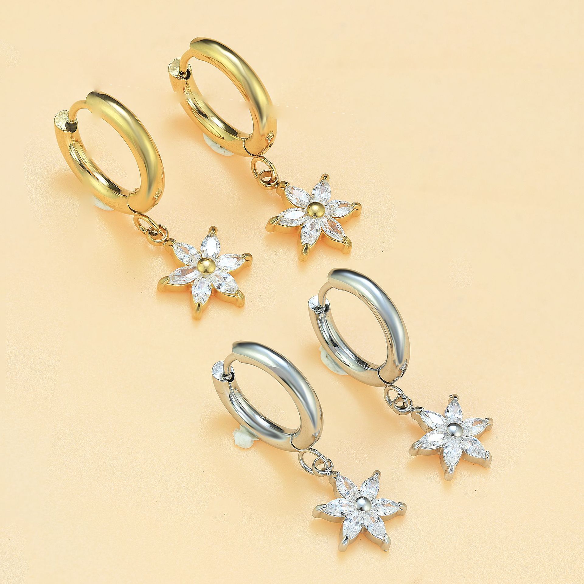 チタン鋼太陽花ジルコンイヤリングステンレス石托18k金丸耳ボタン耳輪ファッション女性イヤリング