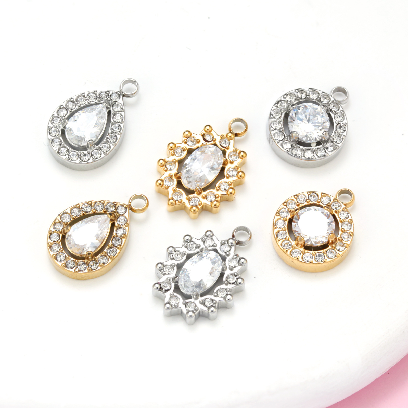クロスボーダーステンレス囲みジルコンペンダントDIYイヤリングネックレスアクセサリーラウンド楕円水滴ジルコンペンダント