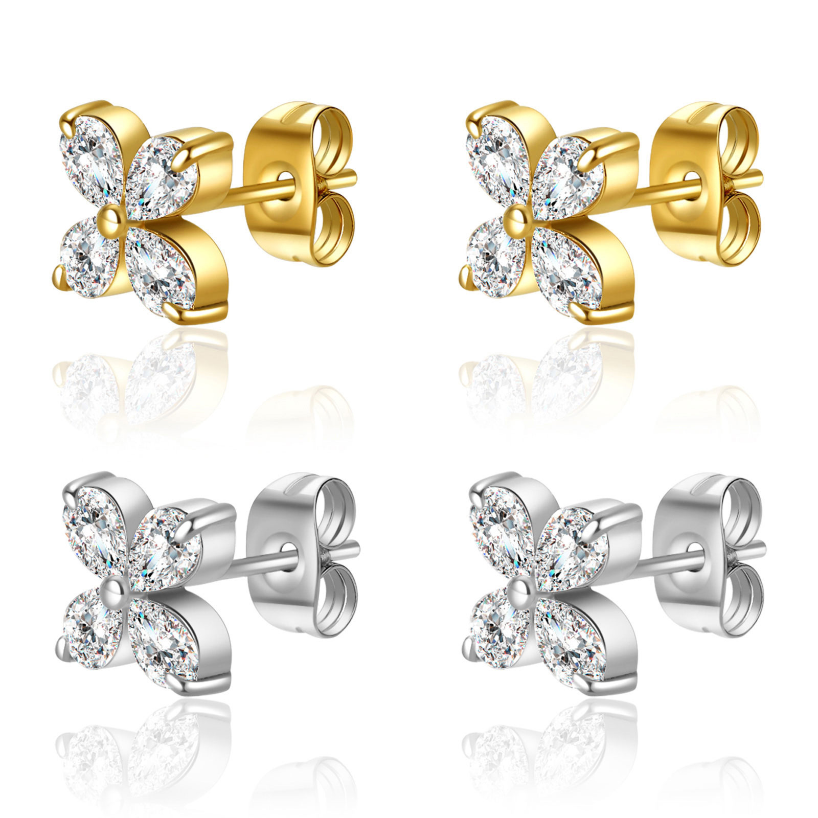 四葉草ジルコンステンレスピアス真空18kゴールドメッキ3Aジルコンファッションピアス女性クロスボーダーピアス
