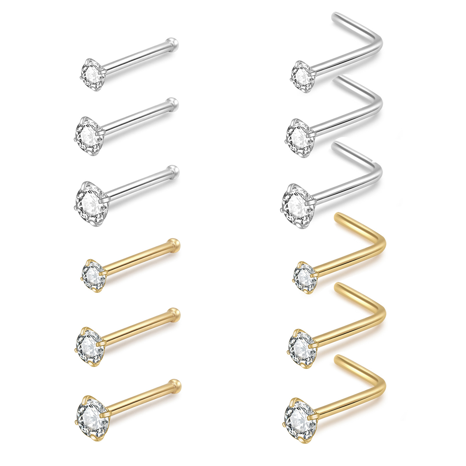 欧米の国境を越えたステンレス爪にジルコンを入れた1字7字鼻釘唇釘ストレートロッドlロッド穿刺アクセサリーメーカー卸売り