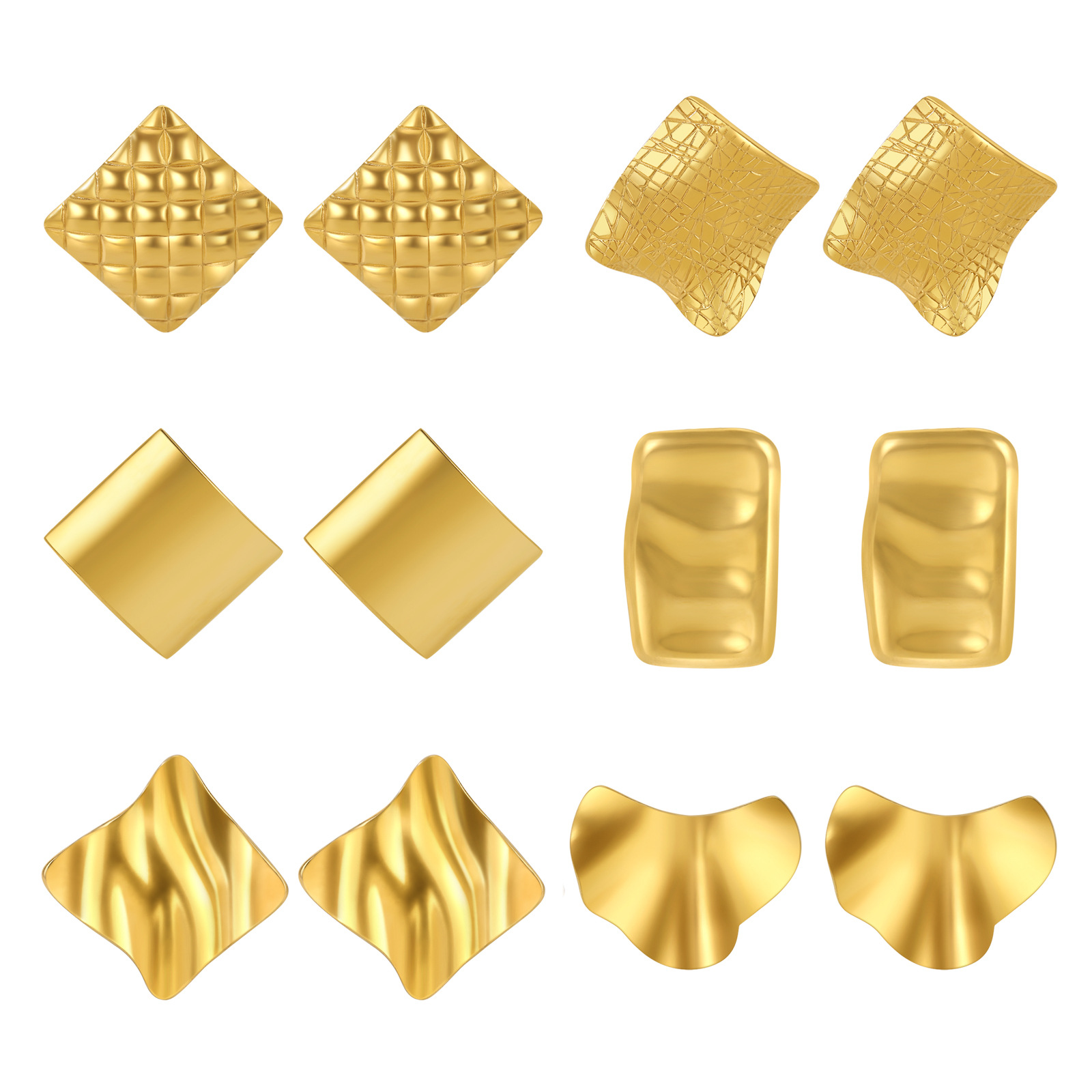 金色の正方形の立体的な質感のレトロなファッションのイヤリングのステンレスの18kの金の越境の人気がある女性のイヤリング