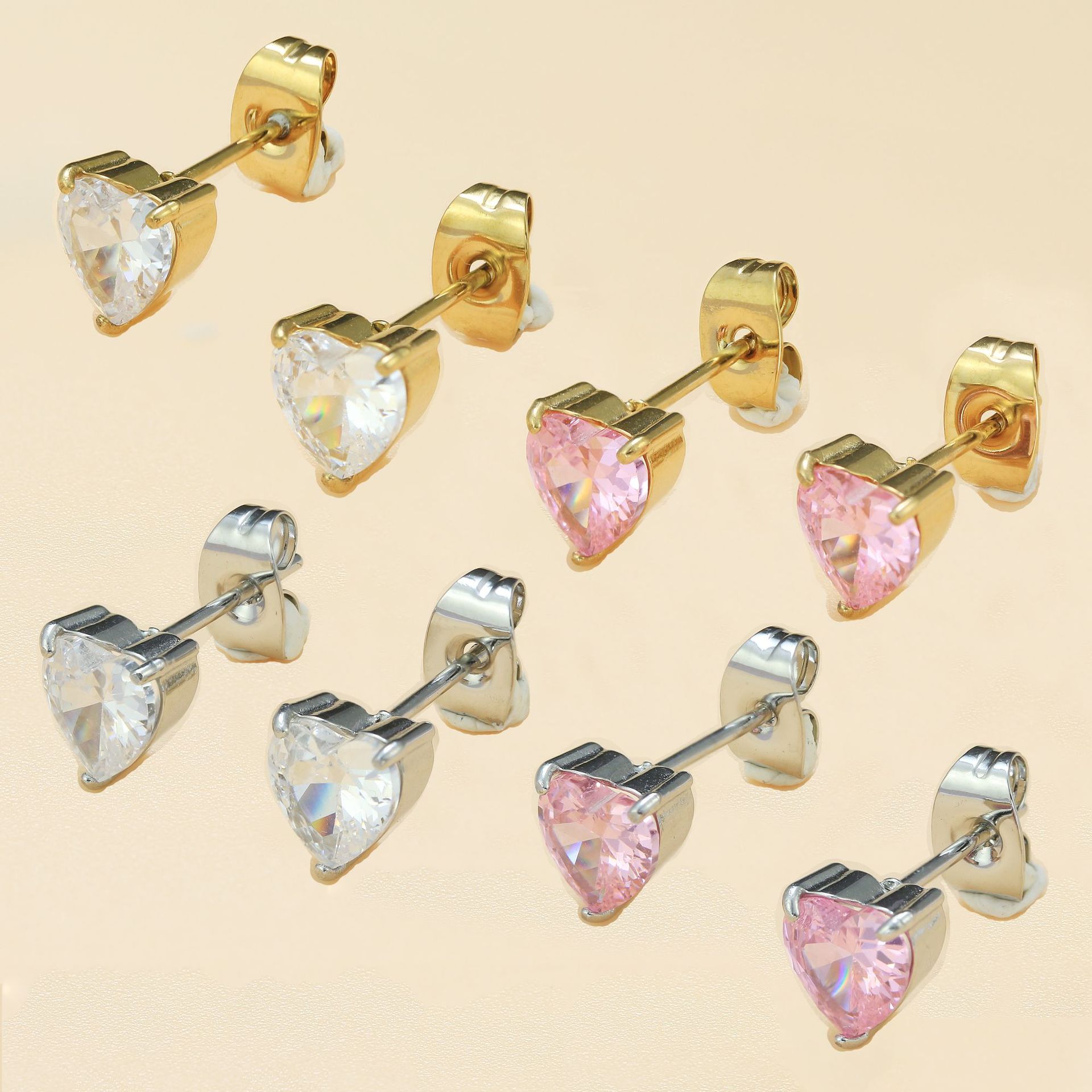 チタン鋼爪ハート型ジルコンピアス白いピンクジルコンファッション女性蝶ボタンピアスメーカー卸売り