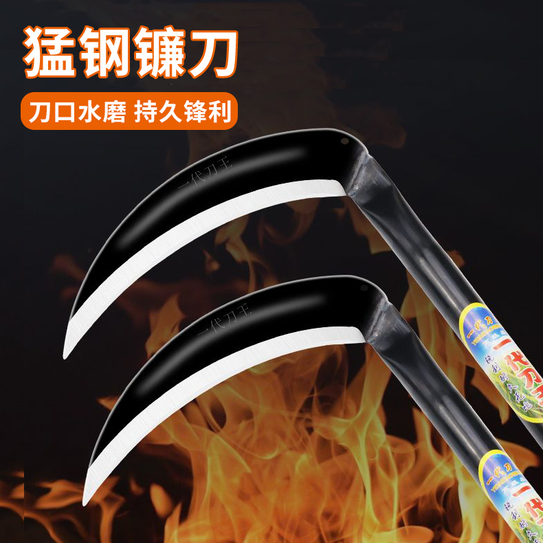 農業用高マンガン鋼長柄鎌、両用草刈りナイフ、鋭い小麦刈り斧、屋外除草ナイフ、釣り