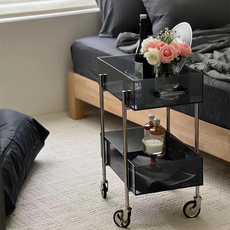 中古トロリー収納ラックリビングルームソファサイドテーブルステンレス鋼モバイルスナック収納ラック