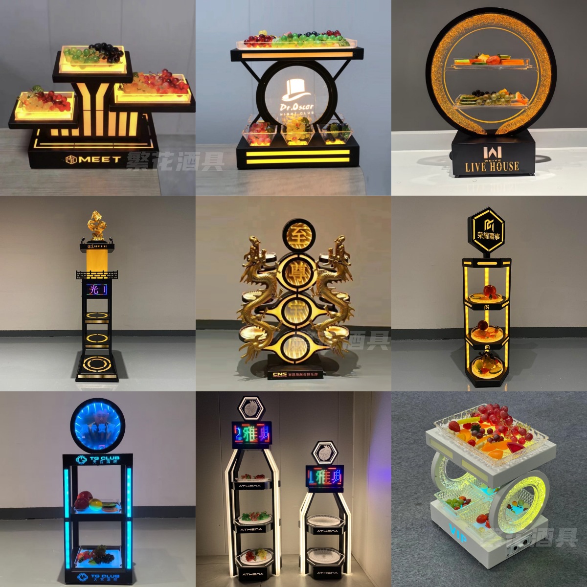バーグローイングフルーツプレート KTV スナック盛り合わせ鉄ステンレス鋼クリエイティブ二層多層 LED フルーツプレートスタンド