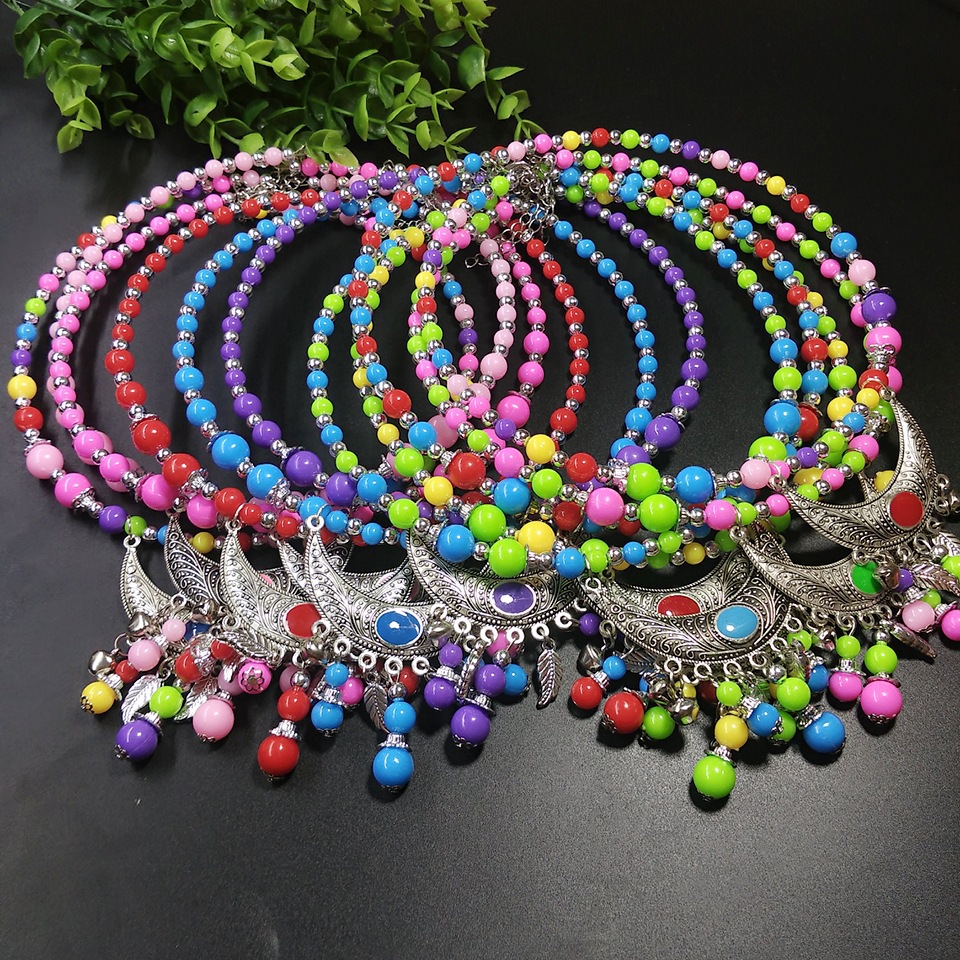 レトロエスニックスタイルの首輪ミャオ族シルバービーズペンダント首輪セーターチェーン鎖骨首輪チベットジュエリー首輪