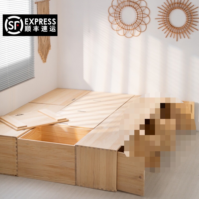 畳木箱ベッド収納ベッドボックス収納出窓スプライシングキャビネット香港小型アパート無垢材ボックス