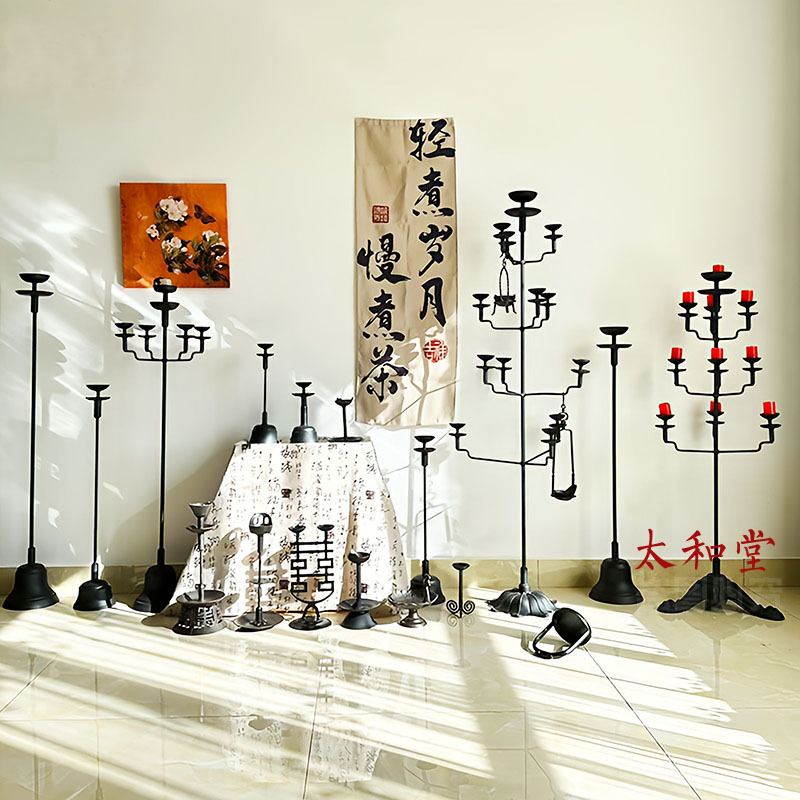 レトロな鉄の燭台、アンティークのオイルランプ、中国の禅フロアランプ、鋳鉄の燭台、わびさびスタイルのランプスタンドの装飾品