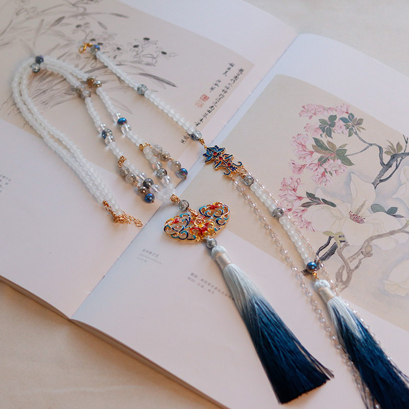 漢服古代スタイルのソフトネックレス取り外し可能な超ロングタッセルネックレスデイリーレトロ多用途明製首輪アクセサリー