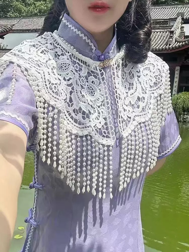 白いレースのヘビーデューティーレトロな新しい中国風のパールタッセル民族風の漢服雲肩とチャイナドレスショール
