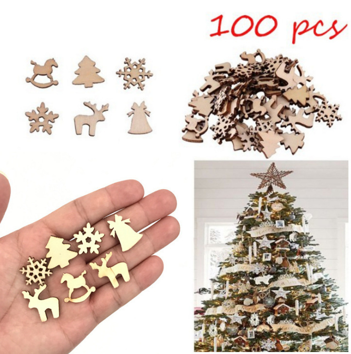 現物クリスマス漫画雪花木片クリスマスツリークリスマス木馬鹿DIY手作り部品100PCS/袋