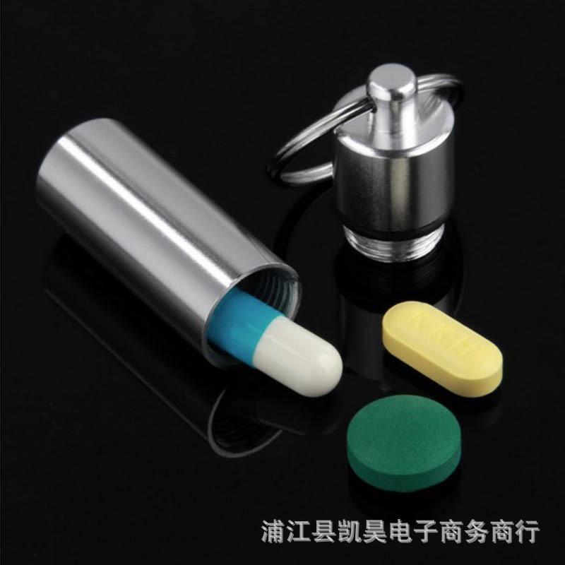 クロスボーダー直供10g薬品収納ケースキーホルダー付き小薬ケース密封薬筒防水アルミニウム合金