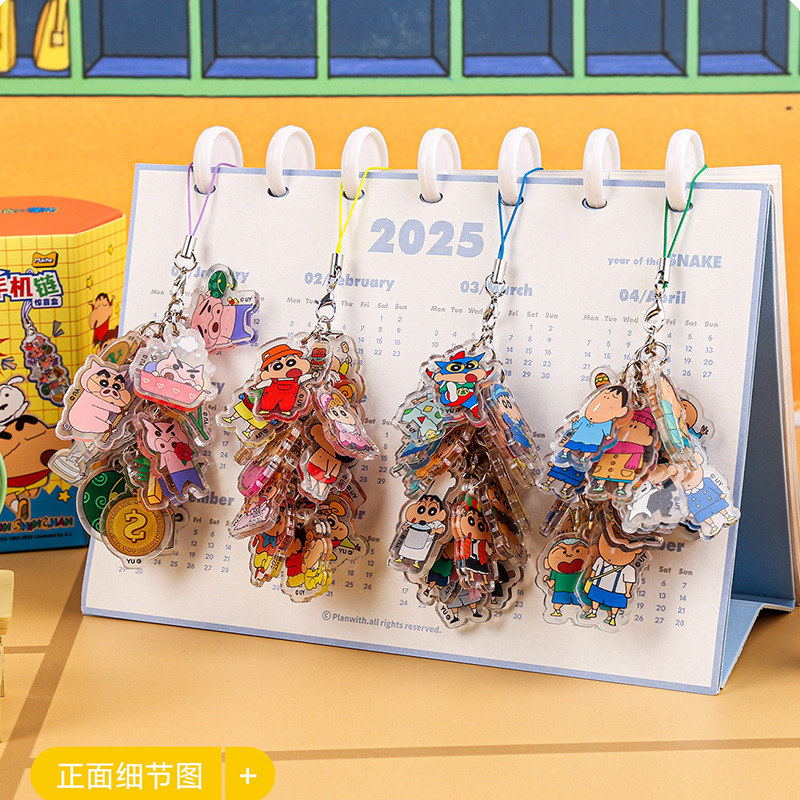 Maihe クレヨンしんちゃん アクリルパイル携帯電話チェーン サプライズボックス (9 個/ディスプレイボックス) 漫画キーペンダント