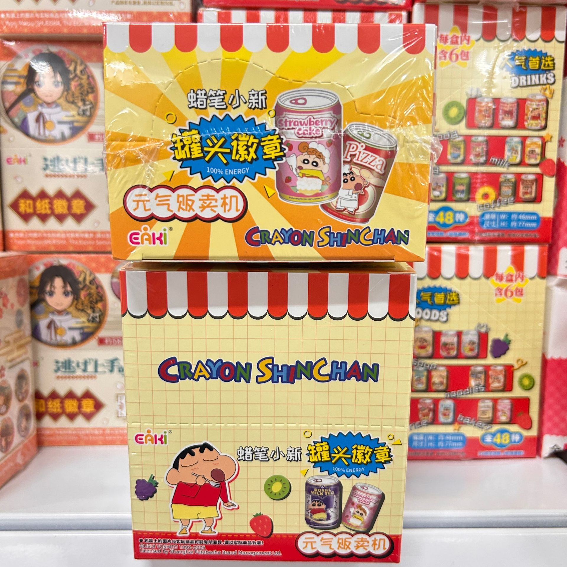 【正規品】イーイククレヨンしんちゃん缶バッジ-活力自動販売機シリーズ(エンドボックス6個)