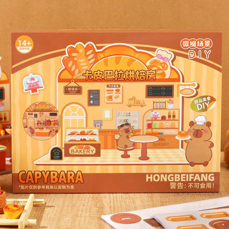 Qingyifang DIY 模擬食品シーン シリーズ - カピバラ ベーカリー クワイエット ハウス 手作りの楽しいおもちゃ
