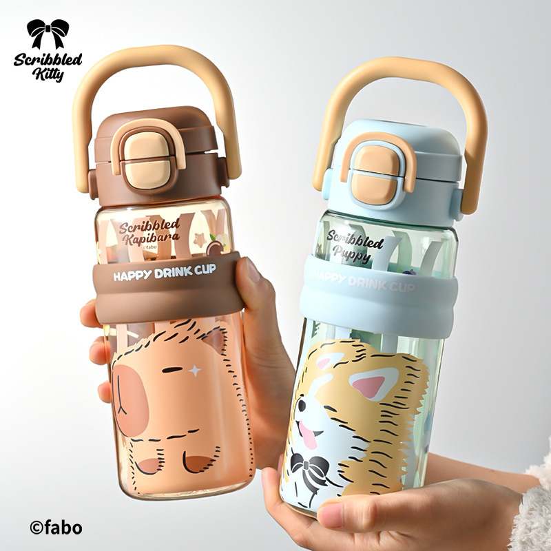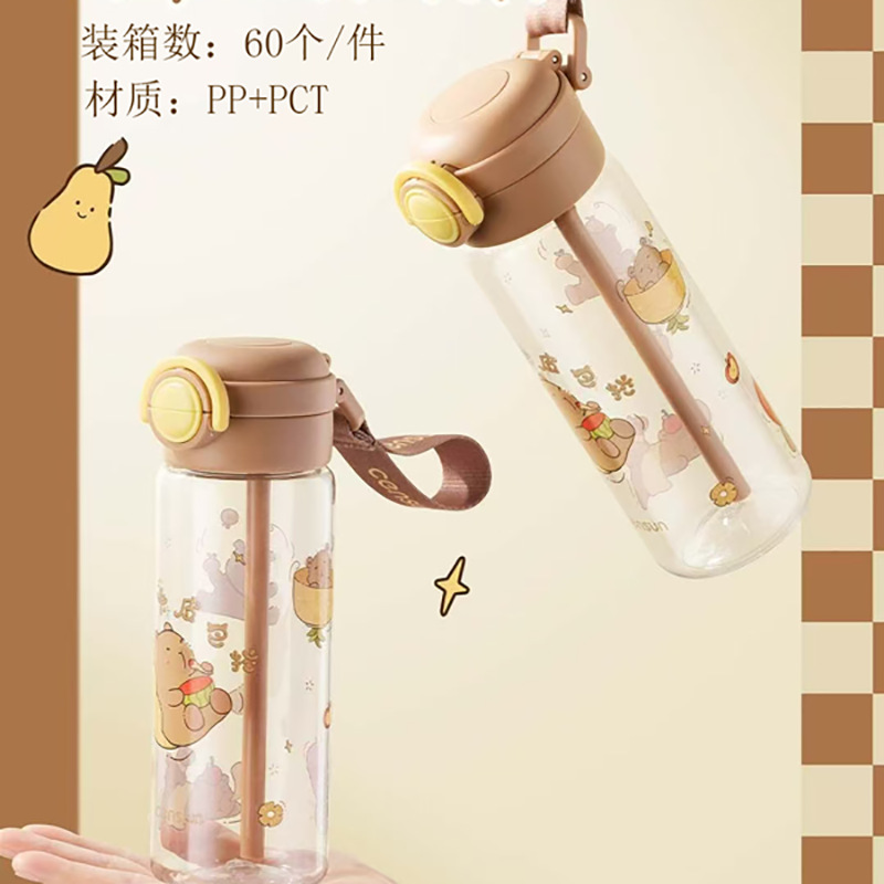 ブラウンファーストカピバラダブルドリンクバウンシングプラスチックカップ 600 ミリリットルポータブル直飲みストローダブルドリンクカップ