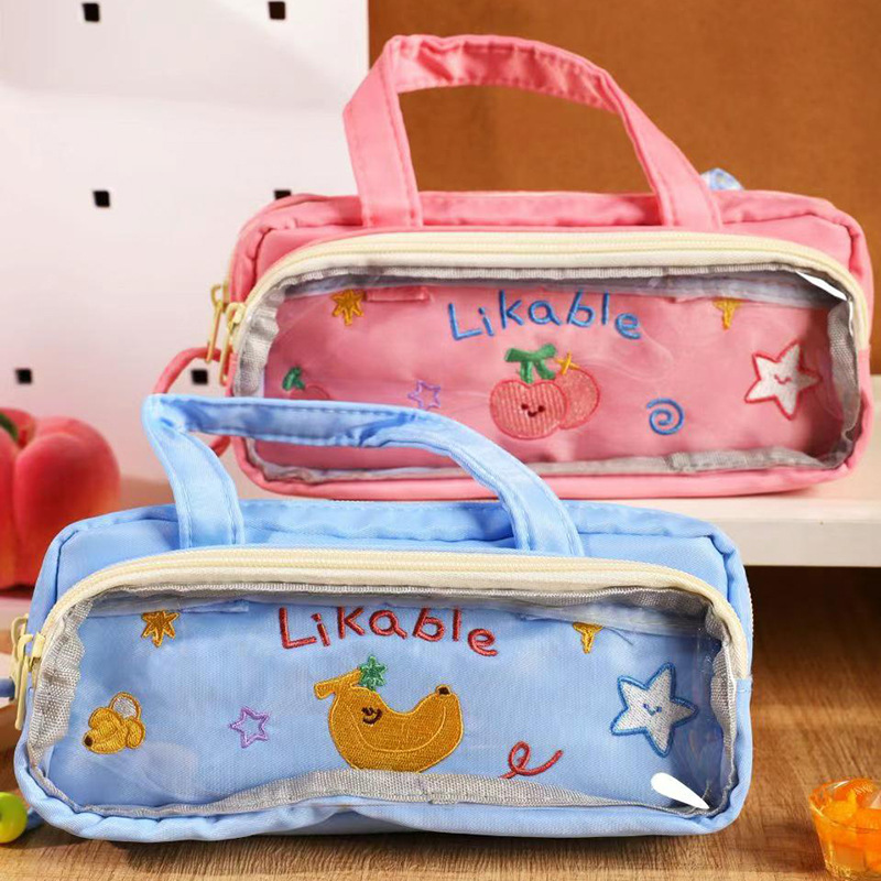 Qingyifang バナナチェリーパイスクエア大容量鉛筆バッグ高価値ポータブル大容量鉛筆バッグ文具バッグ