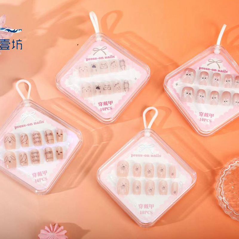 Qingyifang 猫と犬パーティー短い爪ウェアラブル漫画学生クリエイティブウェアラブルネイルアート装飾パッチ