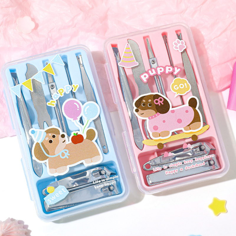 サクサクダックスフント爪切り 7点セット (12個/ディスプレイボックス) 漫画ステンレス爪切りセット