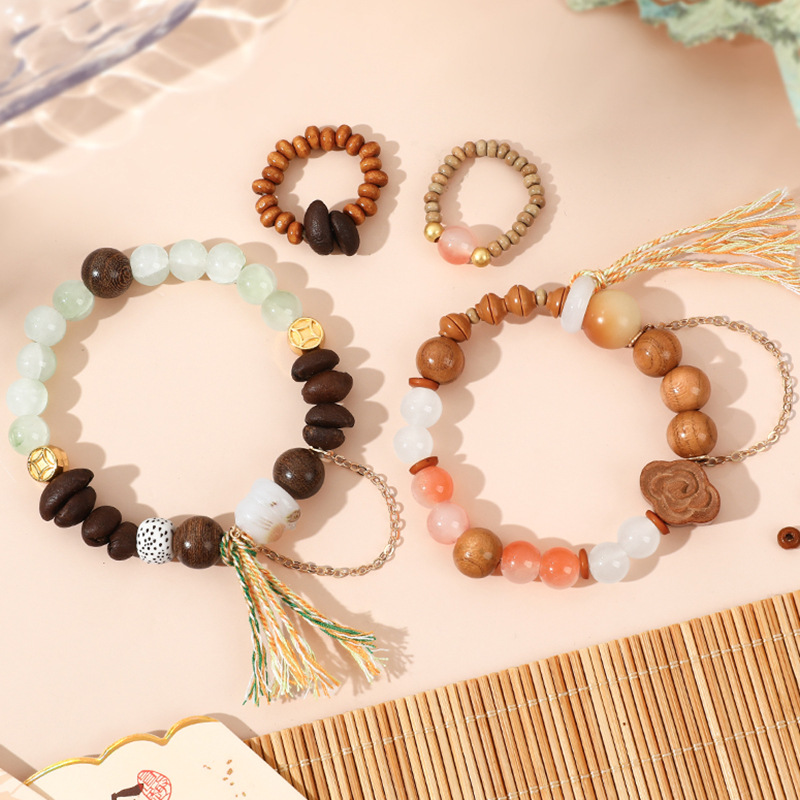 シンチングフィンガーニューチャイニーズブレスレットリングセット(48個/スタンド)レトロガラスビーズブレスレット