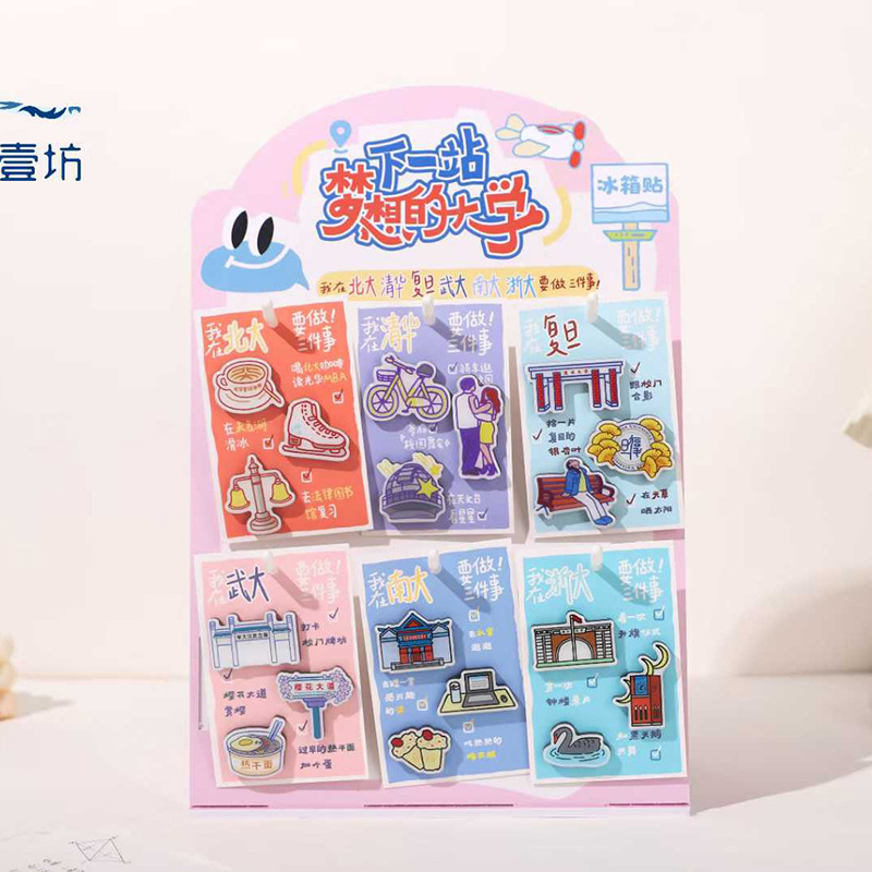 Qingyifang 名門学校コンビネーション冷蔵庫ステッカー (48 枚/ラック) 建築スタイル冷蔵庫装飾ステッカー