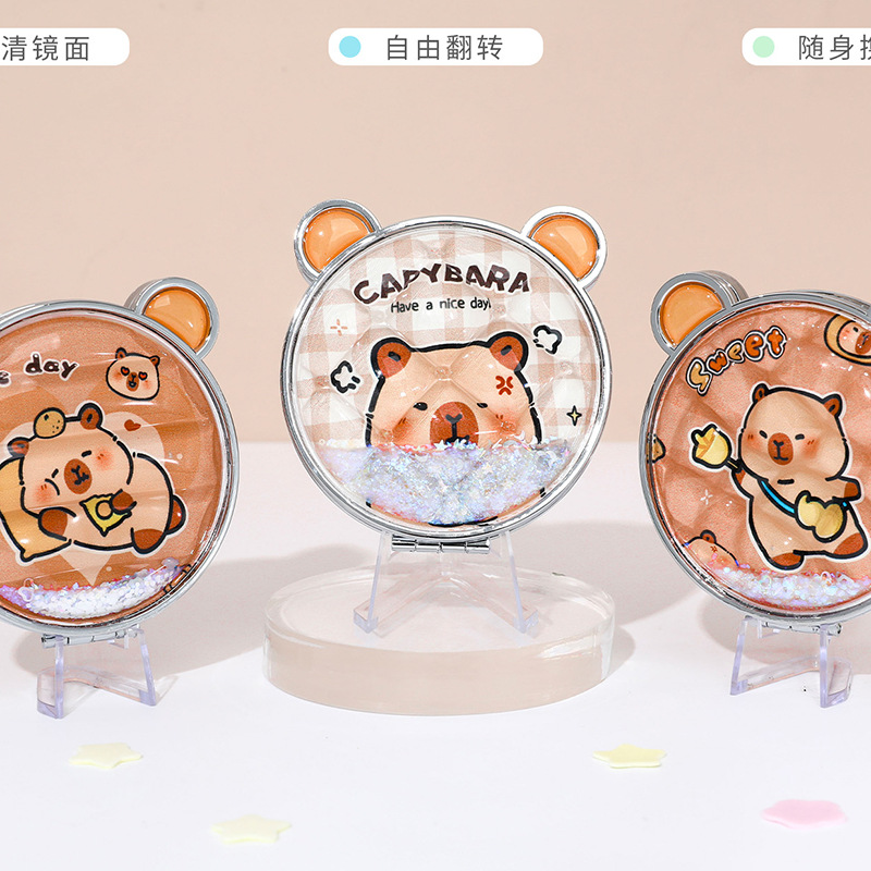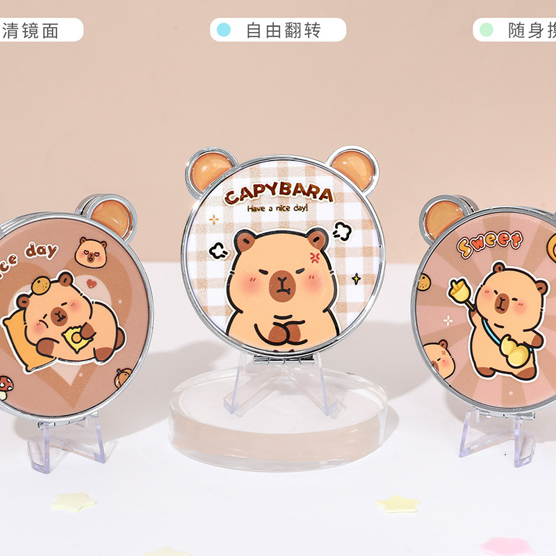 サムズ・アット・ザ・ナックル カピバラ クマ耳フラットミラー (12 個/ディスプレイボックス) ポータブルクリエイティブ漫画メイクアップミラー