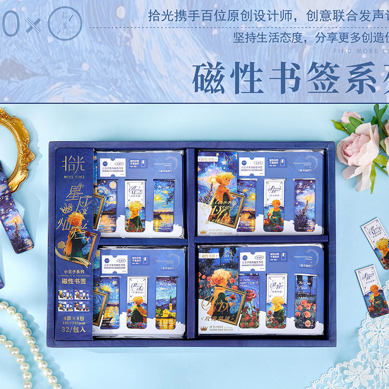 光を集める磁気ブックマーク (32 パック/ディスプレイボックス) 箱入りブックマーク、インスピレーションを与える引用、書道テキスト、読書ブッククリップ